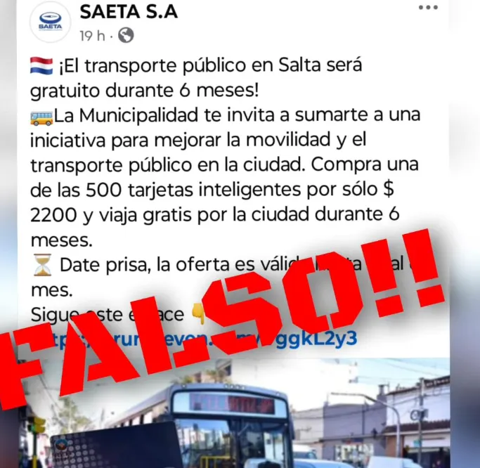 En las últimas horas se difundió una falsa iniciativa de la Municipalidad y Saeta, para conseguir tarjetas inteligentes y viajar gratis en colectivo.